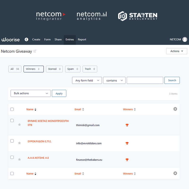 1ος Νικητής: ΘΥΜΗΣ ΚΩΣΤΑΣ ΜΟΝΟΠΡΟΣΩΠΗ ΕΠΕ, κέρδισε ένα Netcom Analytics BI Commercial αξίας 3.600 ευρώ.
