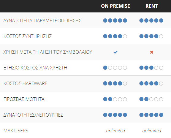 Συνδρομητικό μοντέλο χρήσης (Pay-As-You-Go) με το οποίο πληρώνετε μόνο την ετήσια συνδρομή. Η εγκατάσταση πραγματοποιείται πλήρως στις δικές σας υποδομές.